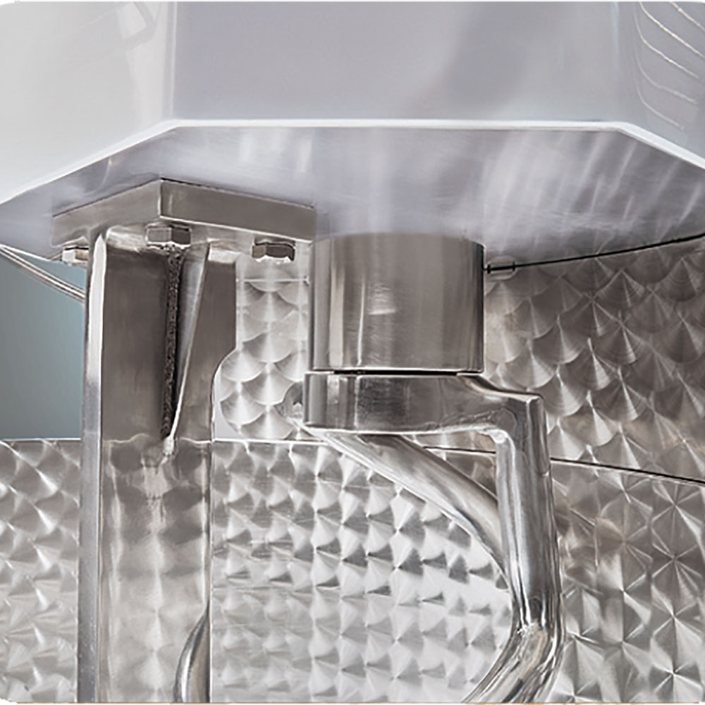 - Tank, spiraal, gereedschapsas en verdeelstuk zijn gemaakt van dik AISI 304 roestvrij staal.