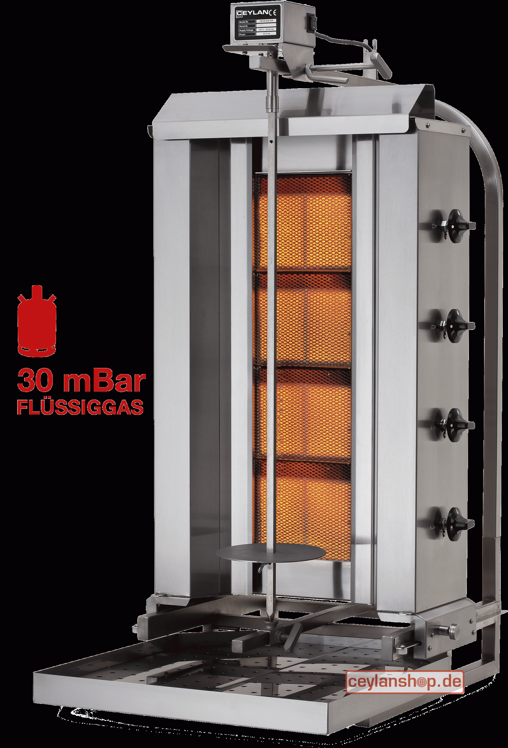 CEYLAN gyros/kebabgrill – K-221-HG – verplaatsbaar – “propaan” 30 mbar
