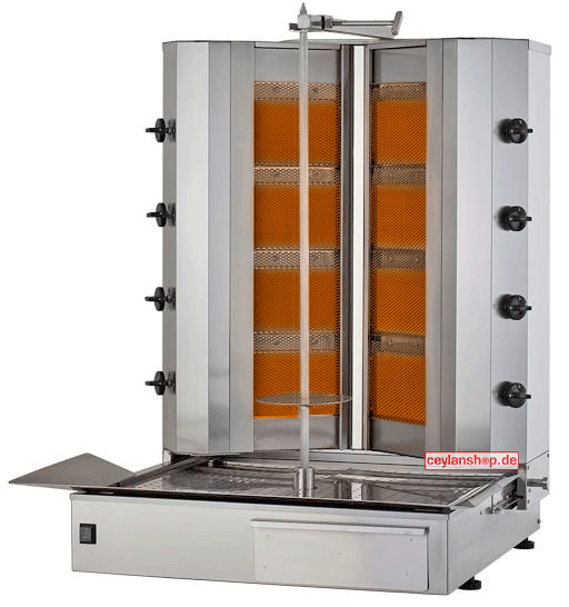 CEYLAN Gyros-/Dönergrill KLG 224 V (CY-TYP V8) – 2 × 4 branders – aardgas 20 mbar – verrijdbaar – motor onderaan