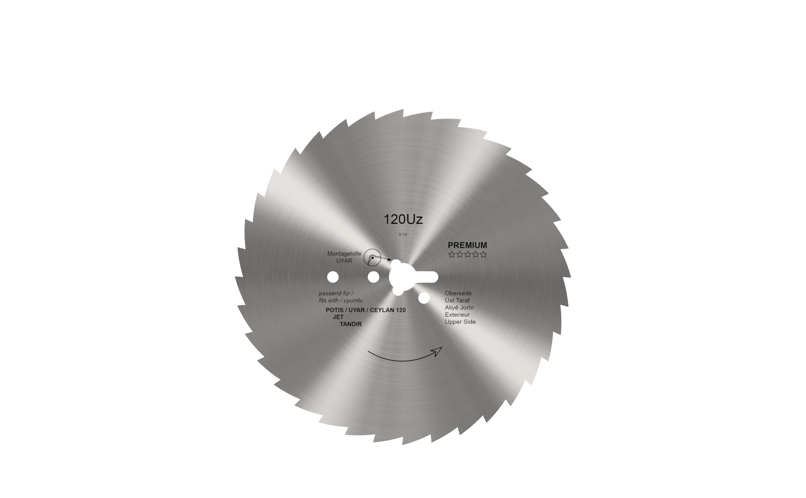Ronde mes voor kebab / gyros mes universeel Ø 120 mm – PREMIUM gekarteld