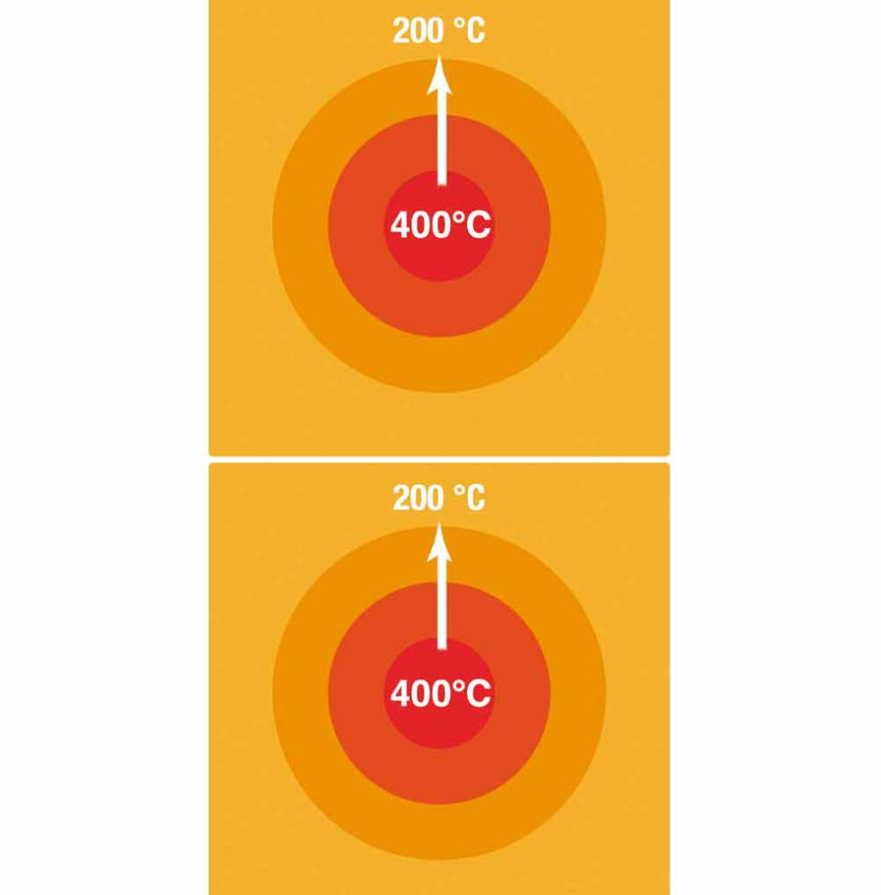 - Bord (15 mm) van “thermo-diffuser” staal, verwarmd door eronder geplaatste weerstanden.