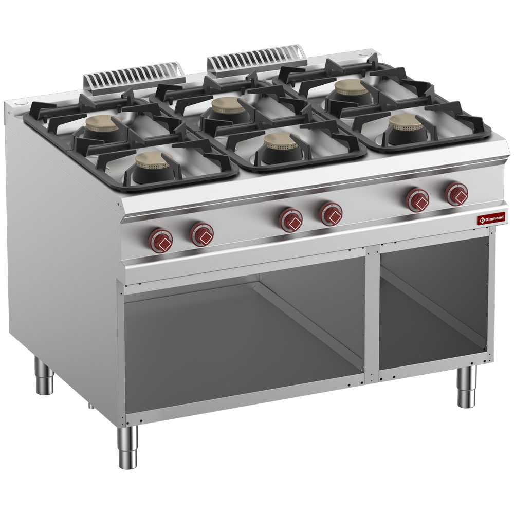 - 6 branders (3x 7 kW, 3x 11 kW) Hoog rendement & Flexibiliteit.