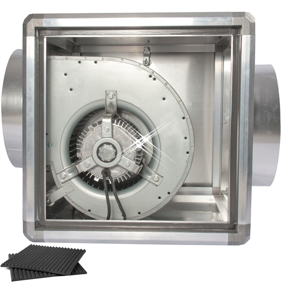 Een afzuigbox is een geïsoleerde box met een slakkenhuismotor ingebouwd. Dit maakt dat ze zeer weinig geluid maken, zonder kracht te verliezen. De stalen boxen zijn geïsoleerd met brandwerend noppenfoam. Dit zorgt ervoor dat de box zo goed als geen geluid maakt.