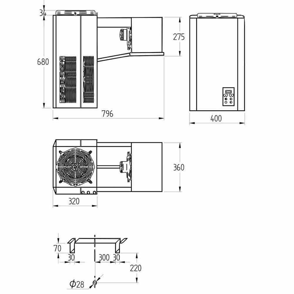 - Koelvermogen 671 (W/f) voor kamervolume 3,6 m³/3600 l (interne temperatuur -20 °C en externe temperatuur +32 °C).