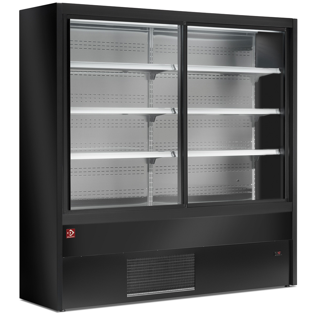 - 3 roestvrijstalen displayplanken (290 mm), voorzien van prijsaanduidingen, In hoogte verstelbare en kantelbare rekken (inclusief plexiglas om producten in een gekantelde positie te houden).