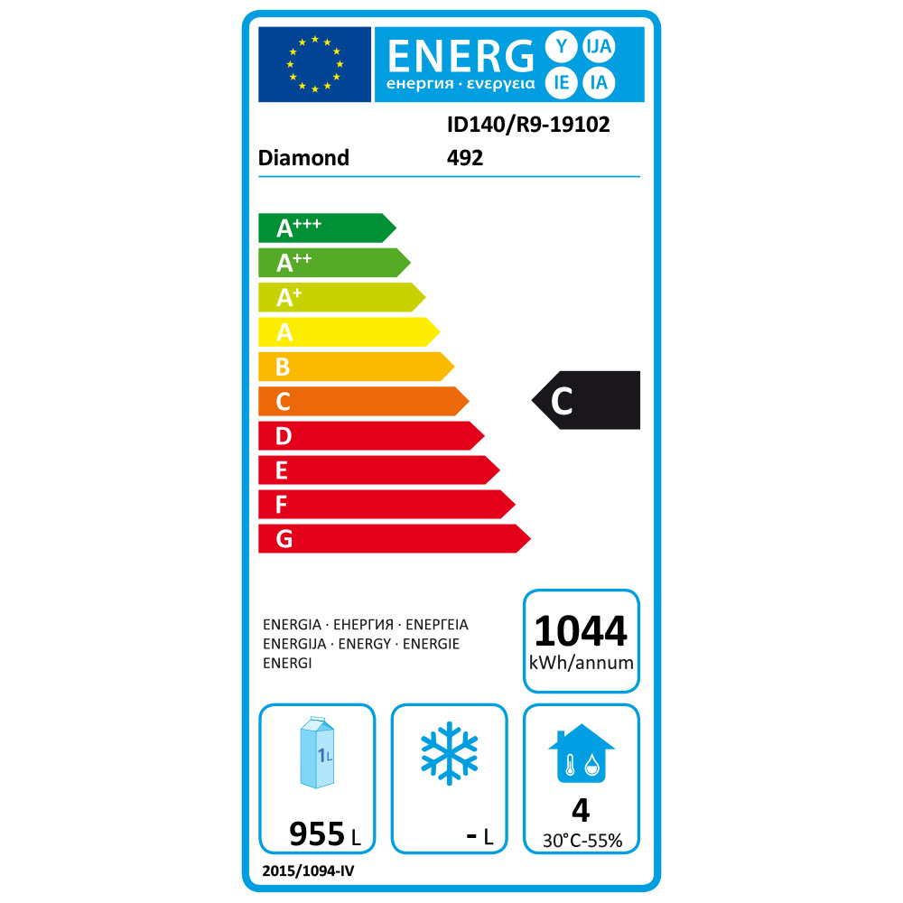 Energie-efficiëntieklasse: C (Klimaatklasse 4, kamertemperatuur +30°C – relatieve luchtvochtigheid 55%).