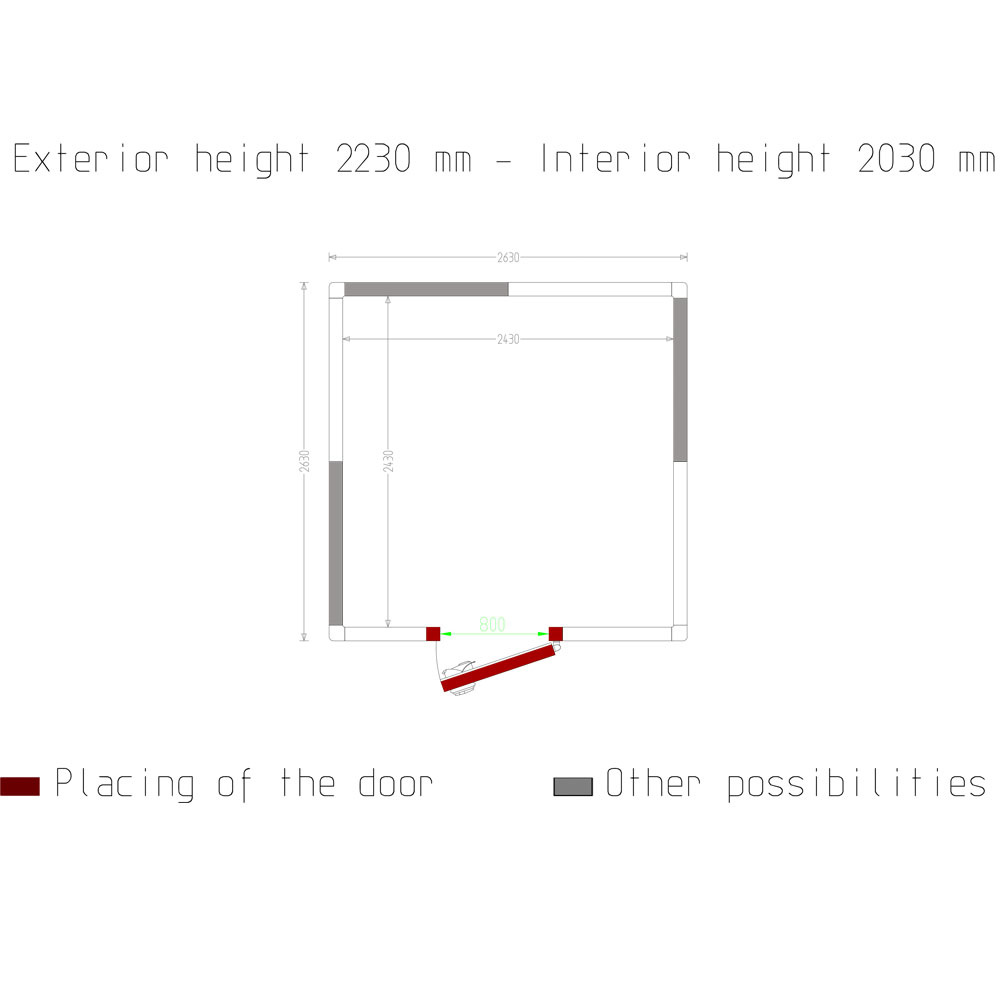 Deur met nuttige doorgang 800xh1900 mm (keuze uit deurpositie op 4 zijkanten).