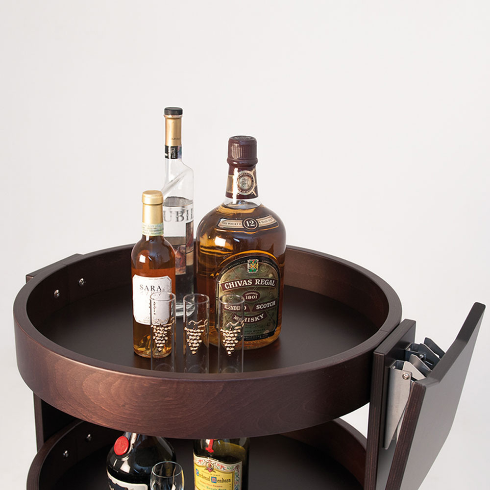 Ronde trolley voor flessen, 3 niveaus hout “wengé”