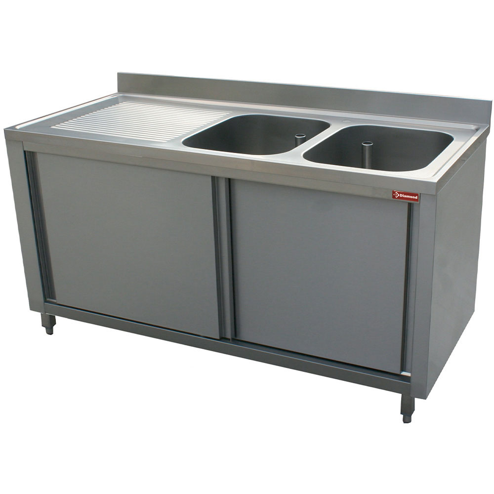 Spoelbak 2 bakken 500x500xh325, links afdruiprek op kast 2 schuifdeuren
