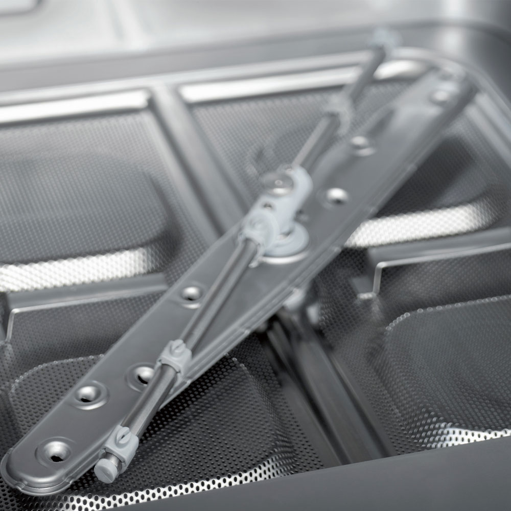 - Wasarm en spoelarm (boven en onder), roterend (onder in roestvrij staal).