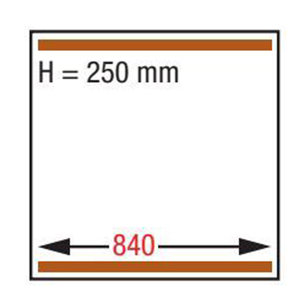 - Kamerafmetingen: 2 x 840 x 830 x h250 mm (afdichtingslengte: 4 x 840 mm).